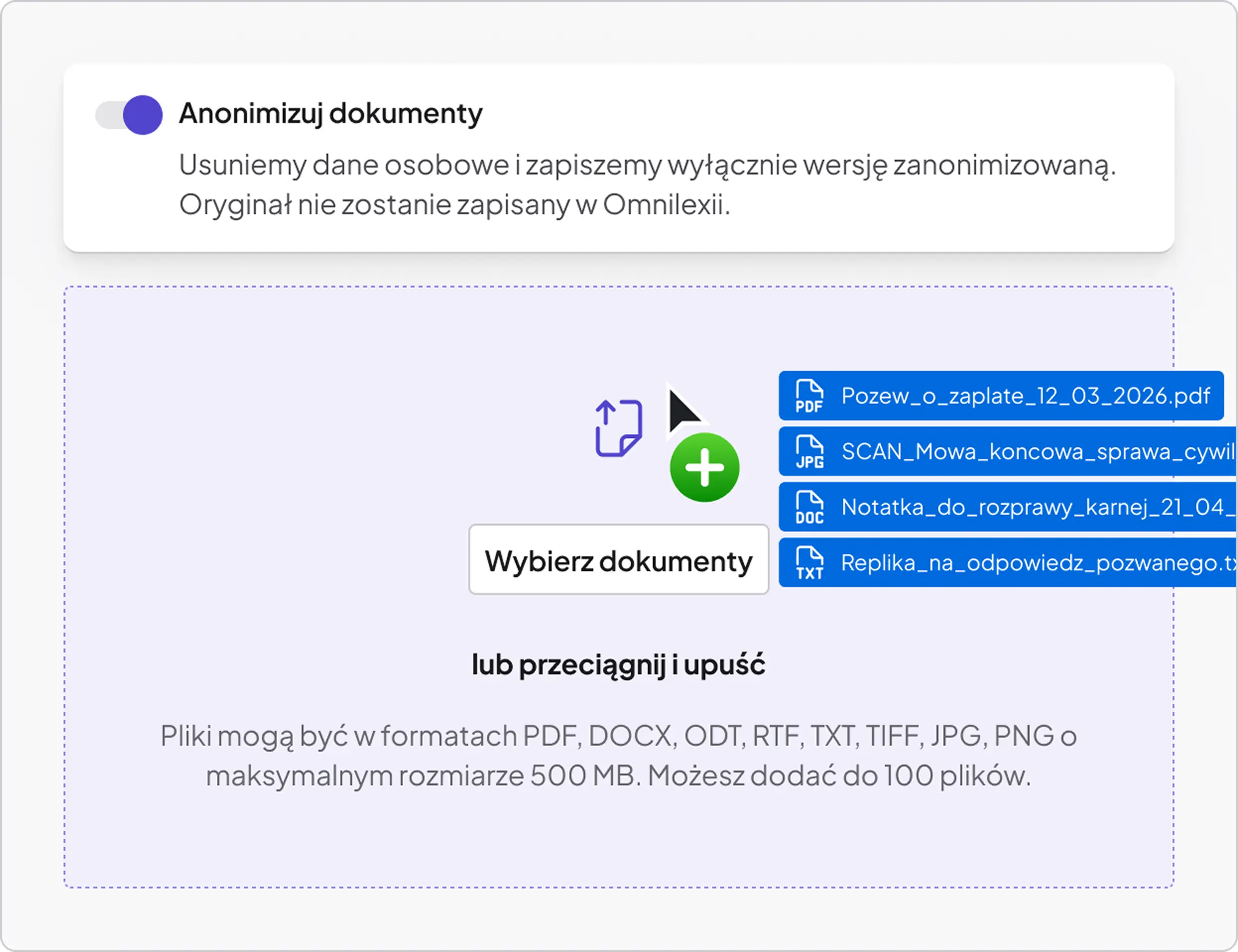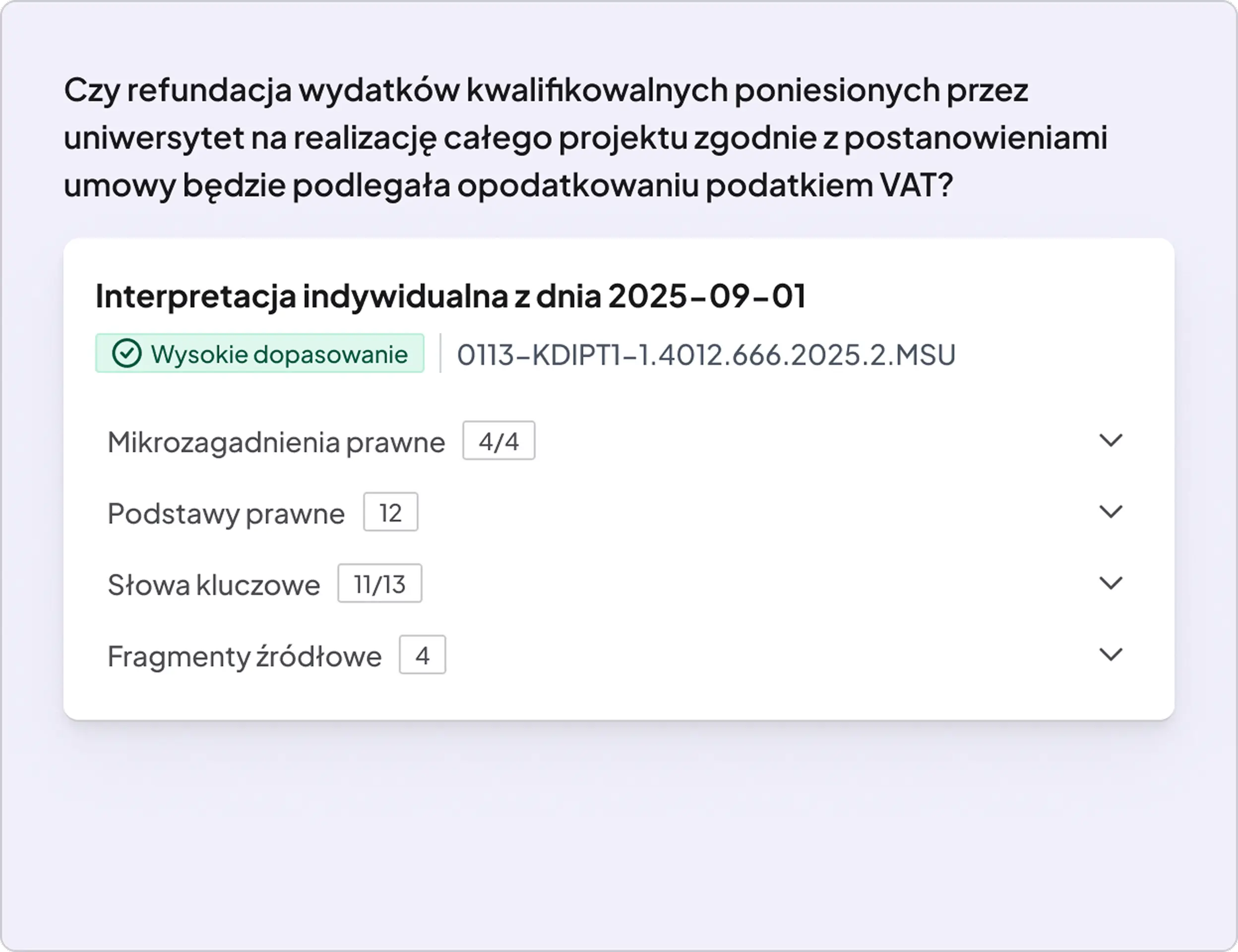 Prowadzisz złożoną Sprawę. Wprowadź jej opis, jako jedno zapytanie. System sam podzieli go na problemy prawne i stany faktyczne, zaproponuje słowa kluczowe i przeszuka bazy dokumentów, dobierając parametry wyszukiwania.